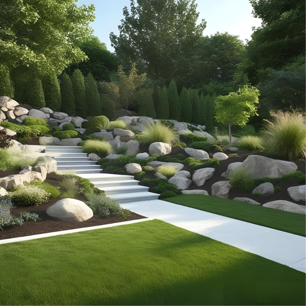 Yürüme yolları, duvarlar, teraslar gibi peyzaj unsurlarının inşası.